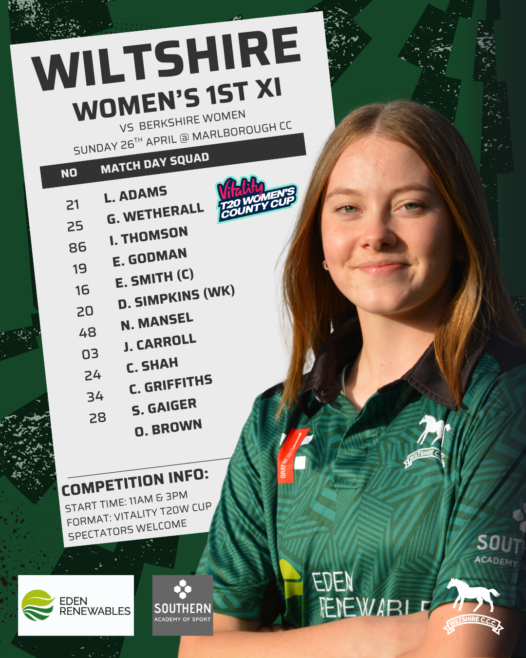 Both Wiltshire & Berkshire will be looking to field a strong playing XI, featuring a number of rising young stars and several well-established players in the Women’s game. However, both sides will also be affected by cup-ties, meaning a number of their home grown players could be representing either Glamorgan or Hampshire in the same competition.